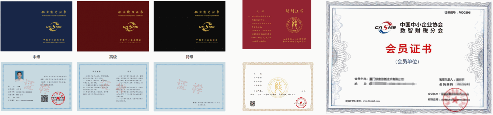 中国中小企业协会数智财税分会会员证书证样